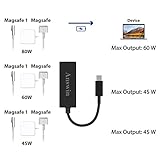 Lightweight design: the compact and lightweight design of usb c to Magsafe adapter is easy for you to take in your bag and easier to leave charger cable in different places you use instead of unplugging and plugging in wherever you go. Macbook 12”60w or macbook 15”87w it will charging at a slower rate and the product may some heat which is expected particularly when running high CPU intensive task. It also perfects for traveling, enterprise, school teaching. Compatibility: with the smart chips, macbook pro, nintendo switch, answin magsafe to usb c adapter works with almost all usb c device: Macbook, dell notebook, Galaxy S8/S9 and more. Here, but it will not affect the charging effort. When using the Answin adapter to charge a device that requires higher wattage i.